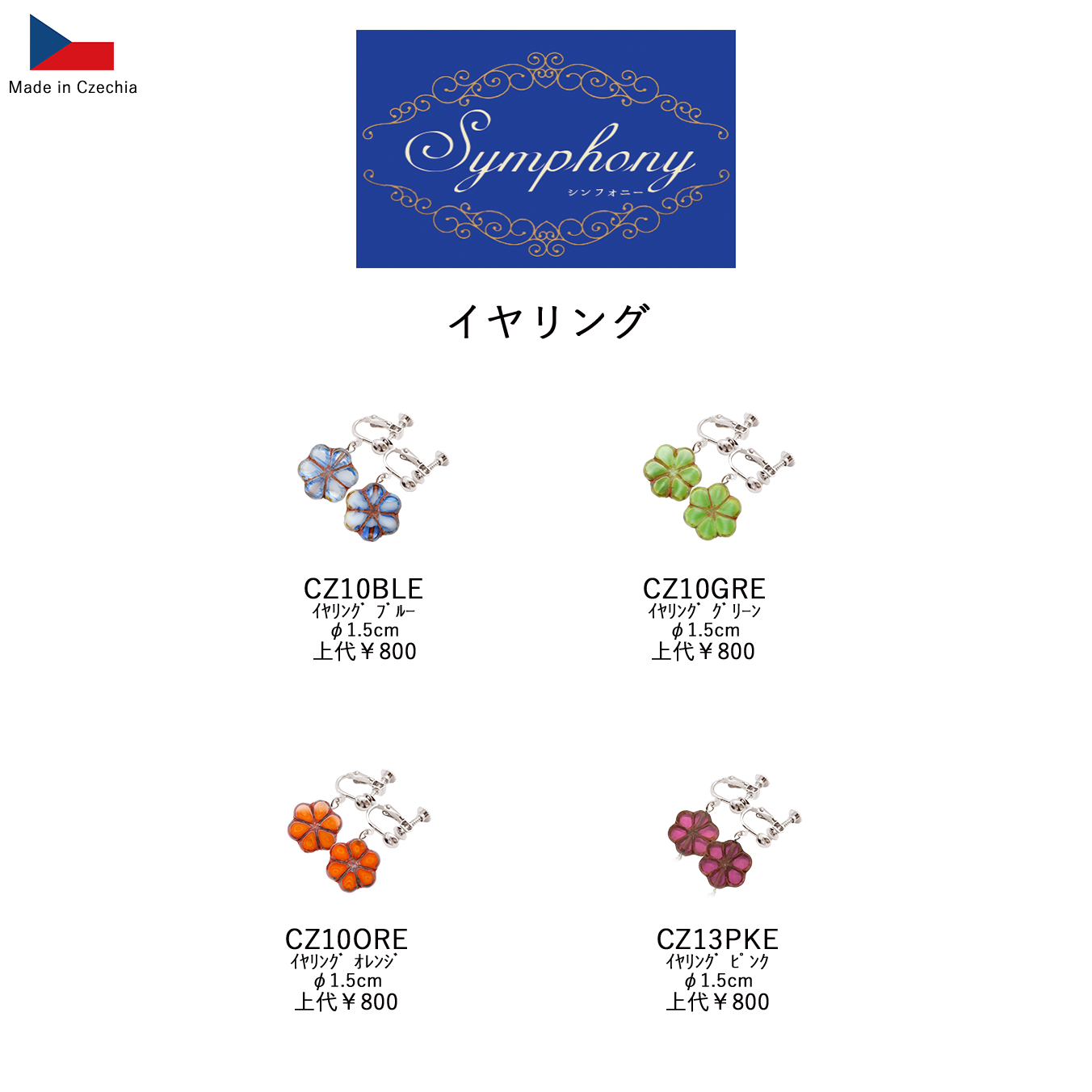 Country of manufacture: Czech Republic Hardware specifications: Screw-spring type earring hardware